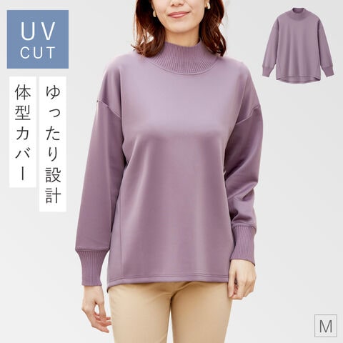 トップス レディース ゆったり 秋冬 長袖 ハイネック トップス 秋冬 M L LL 3L 体型カバー お尻が隠れる 大人 きれいめ カジュアル リブ衿 リブ袖 uvカット おしゃれ 体型カバーリブ付きプルオーバー 50代 服 60代 70代