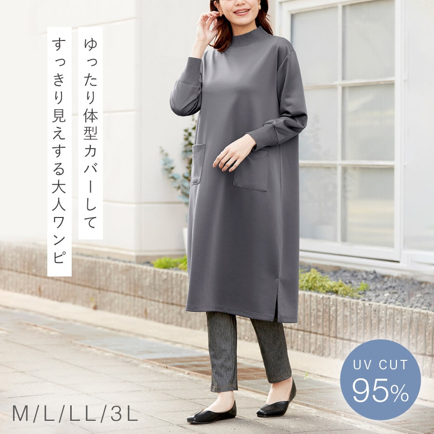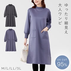 ワンピース 長袖 ミセス レディース 体型カバー ワンピース M L LL 3L 大きいサイズ ゆったり 春 秋冬 長袖 50代 60代 70代 ミセス ファッション UVカット ワンピース 体型カバーリブ付きワンピース カジュアルワンピース