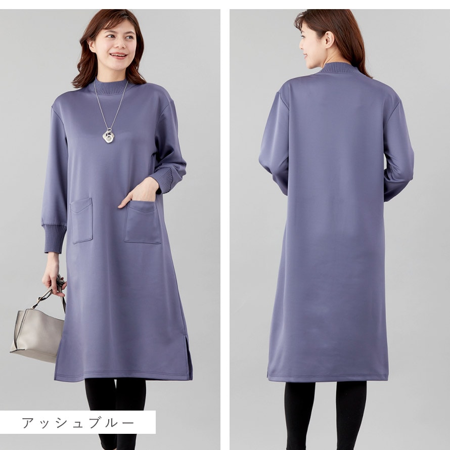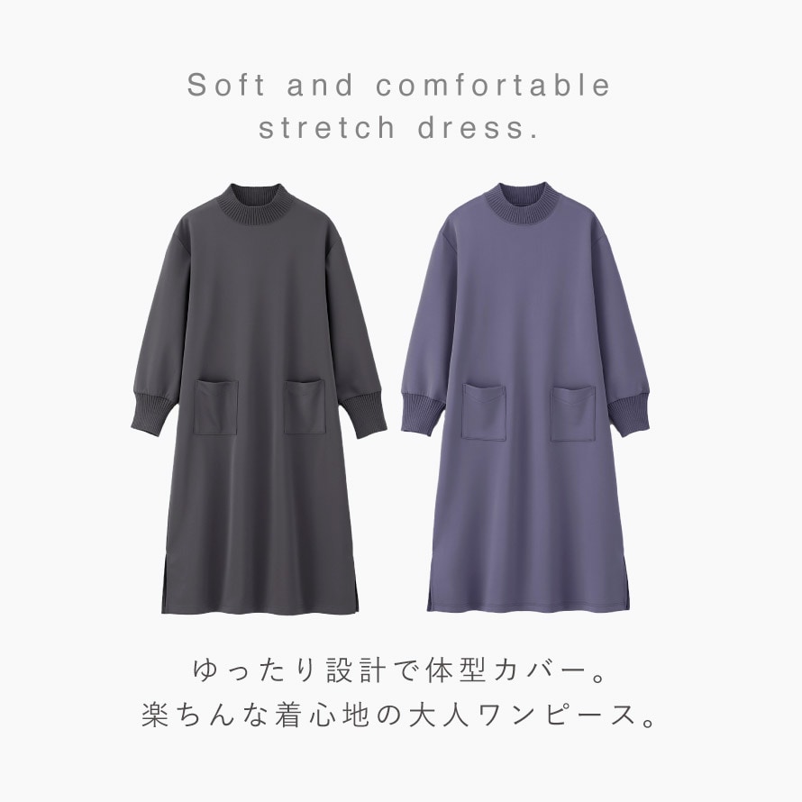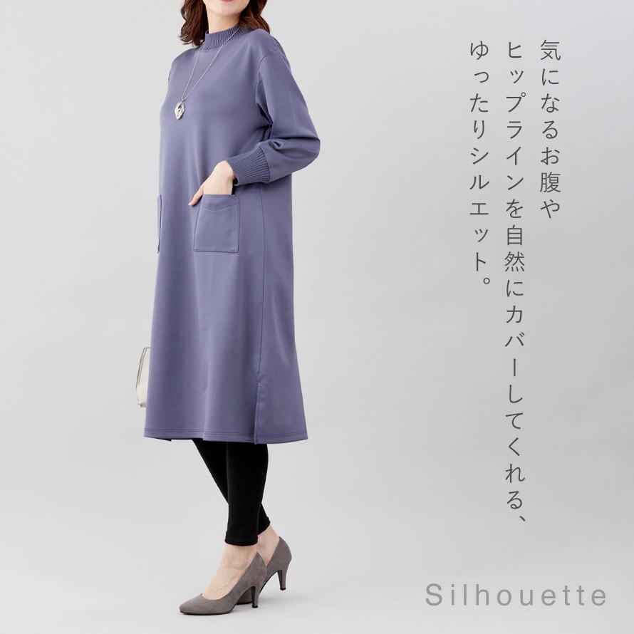 締め付け感のないゆったり設計で、体のラインを拾いません。気になるお腹やヒップまわりを自然にカバーし、リラックス感のある着心地ながらも、きれい見えを叶える上品なシルエット。50代、60代、70代のミセス層のお悩みを解決してくれる、長袖ワンピースです。