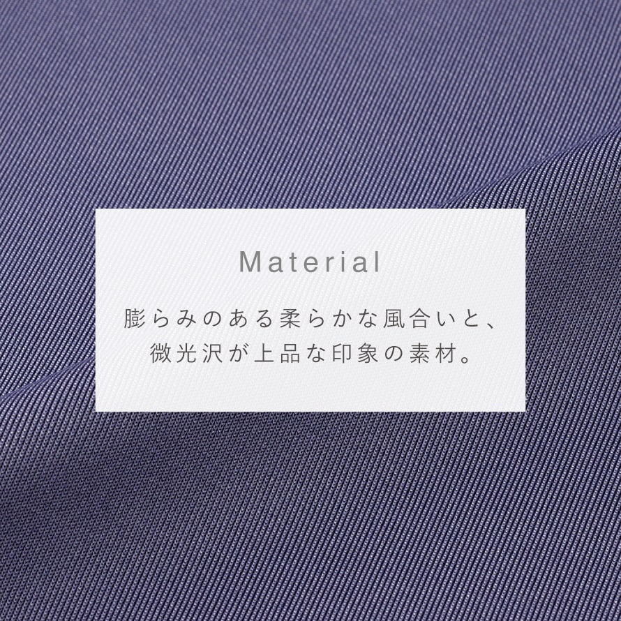 タテヨコにストレッチが効いて動きやすく、長時間着てもラクちん。微光沢のある上品な風合いで、シンプルながらも大人のこなれ感を演出します。