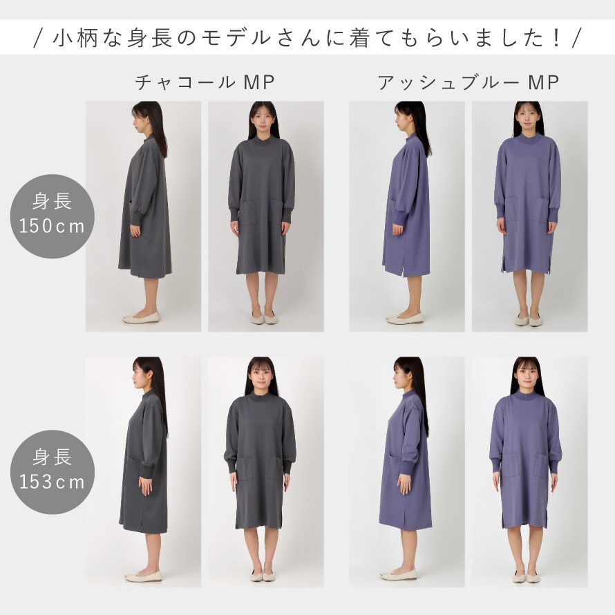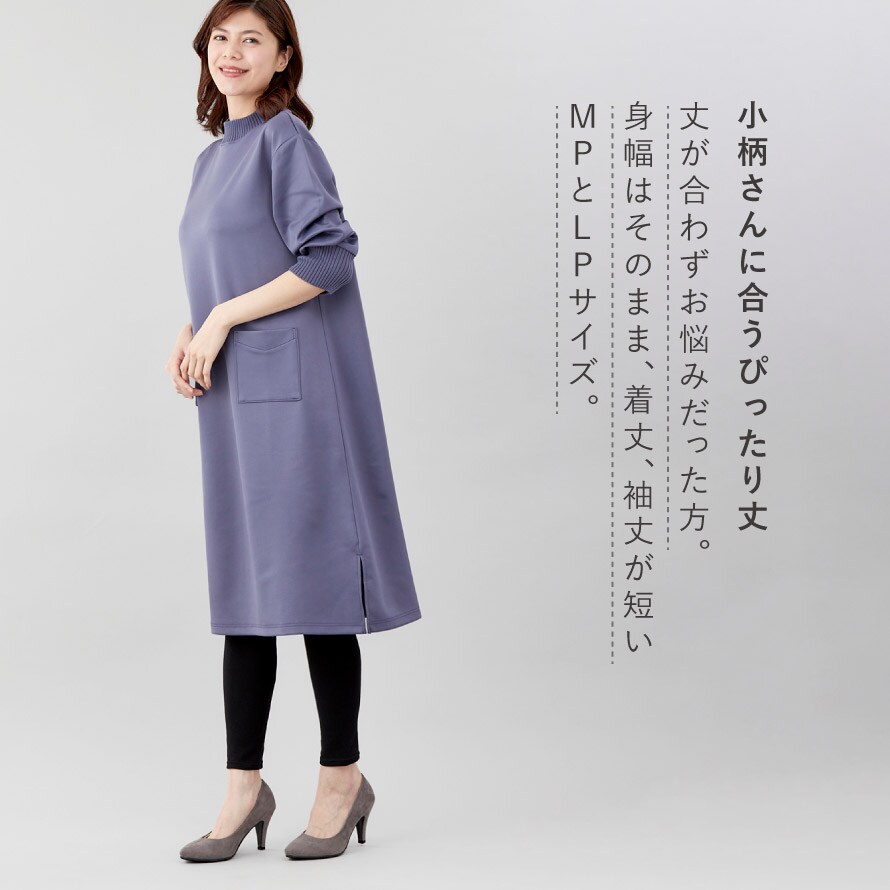 身丈・袖丈は短め、身巾はそのままで着心地ゆったり。身長146~154cmの方に合わせた設計の大人のカジュアルワンピース。身長低めの小柄さんのためのМP・LPサイズです。