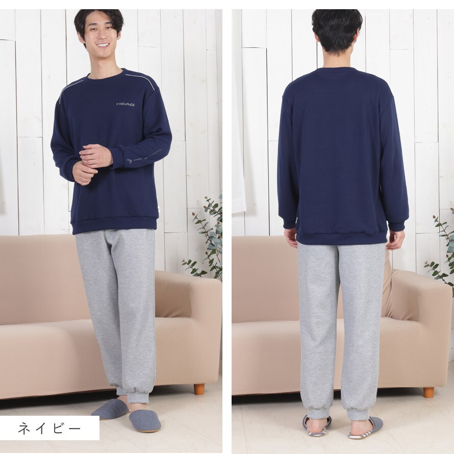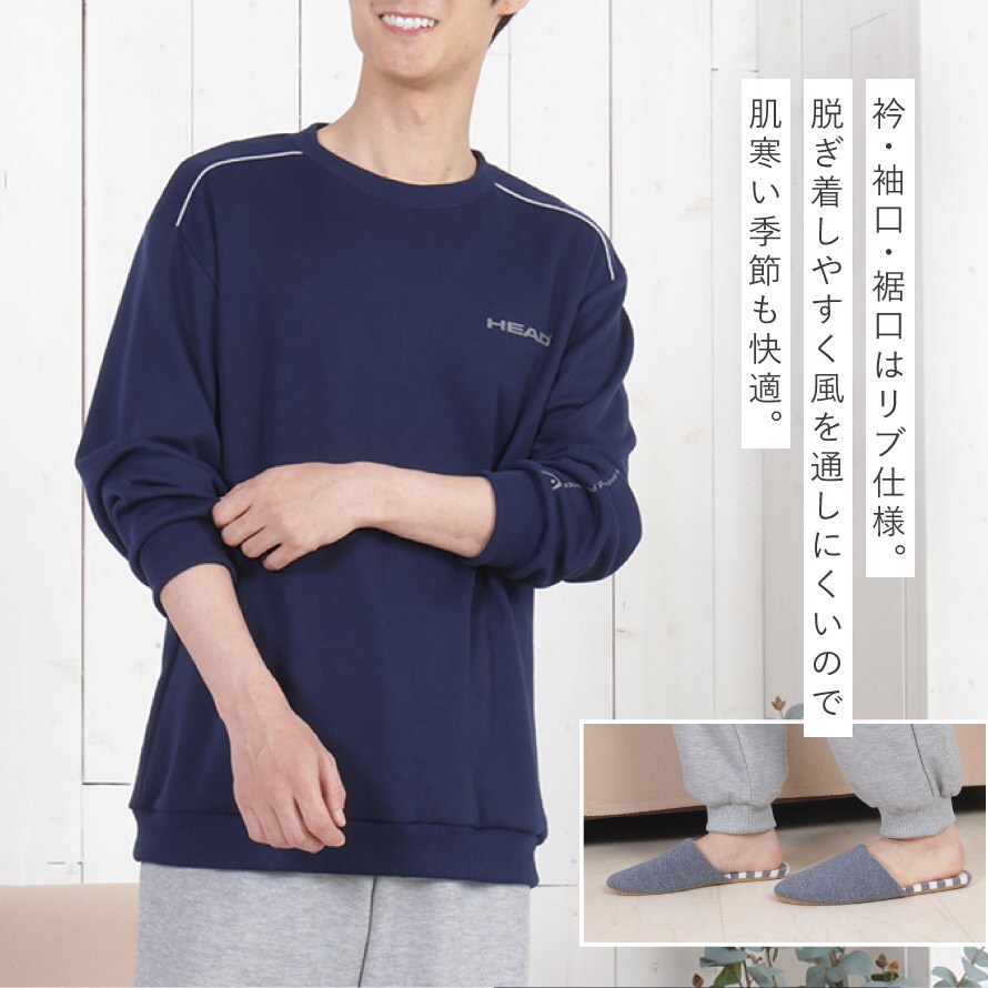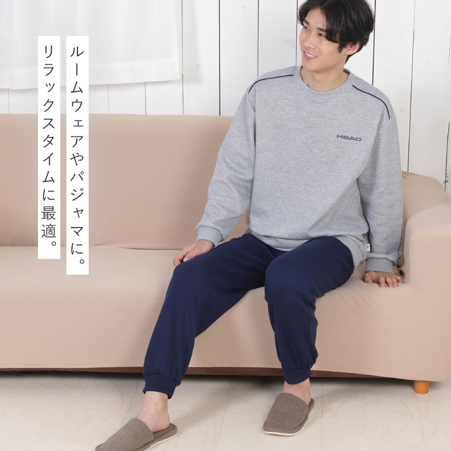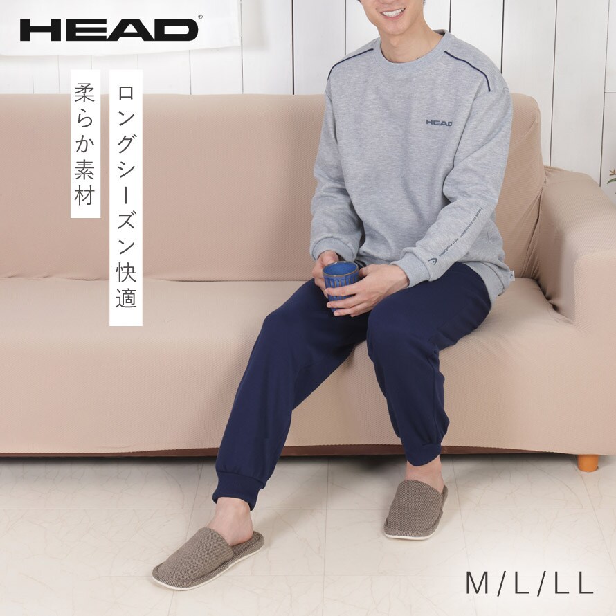 パジャマ メンズ 長袖 上下 秋 冬 リブパンツ M L LL 3L 大きいサイズ ルームウェア 裾絞り HEAD ブランド 部屋着 快適ホームウェア 男性 紳士用 シニア ゆったり ポケット付き