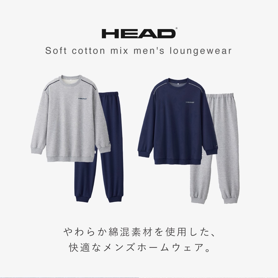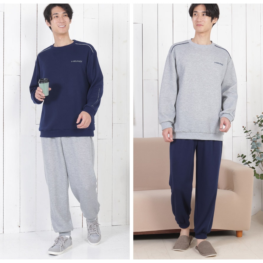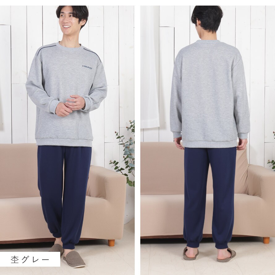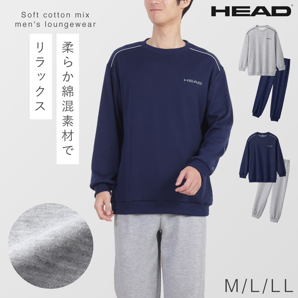 パジャマ メンズ 長袖 上下 秋 冬 リブパンツ M L LL 3L 大きいサイズ ルームウェア 裾絞り HEAD ブランド 部屋着 快適ホームウェア 男性 紳士用 シニア ゆったり ポケット付き