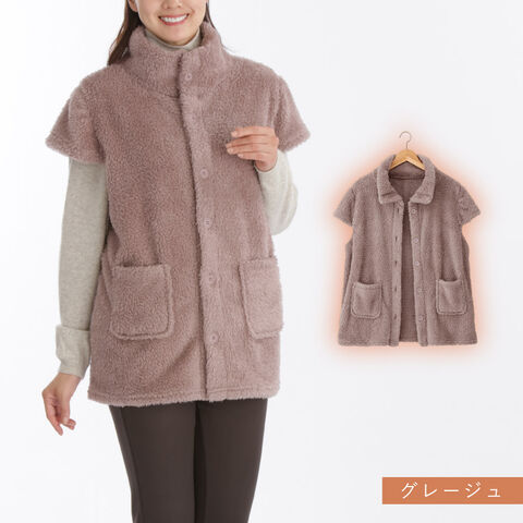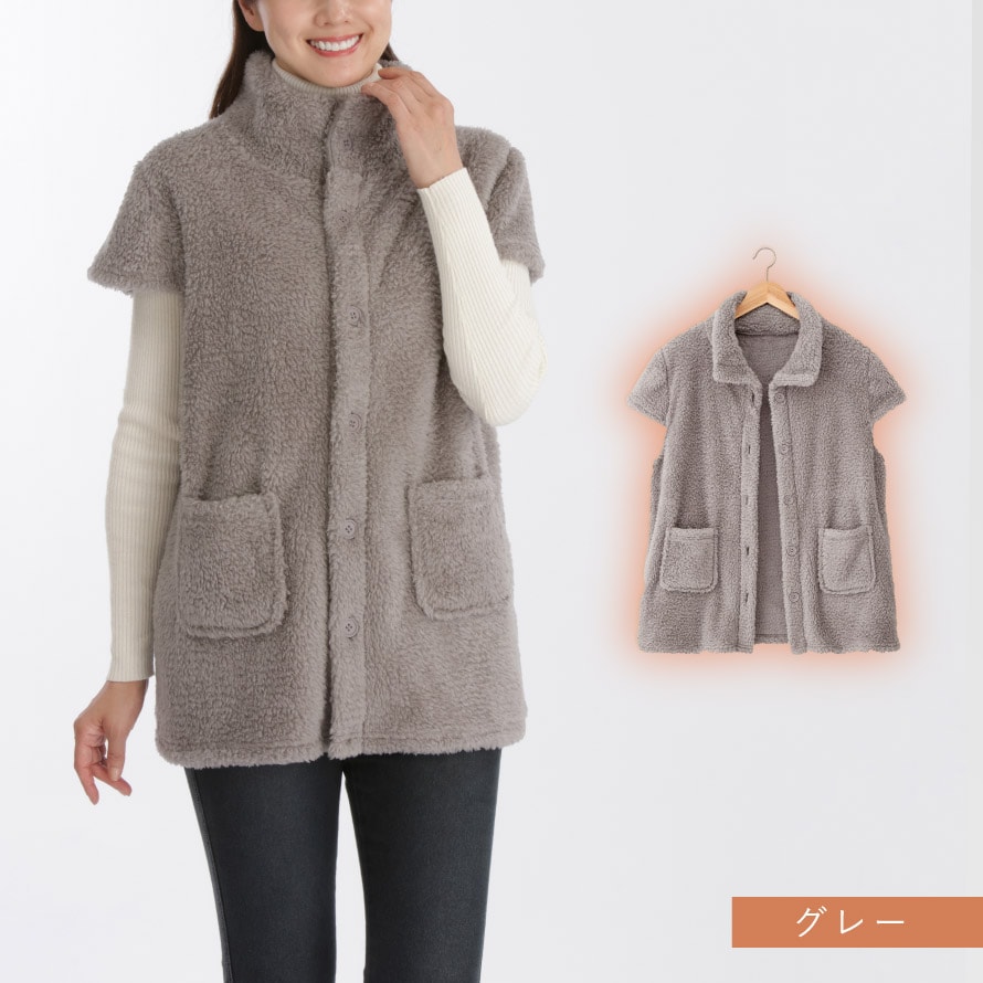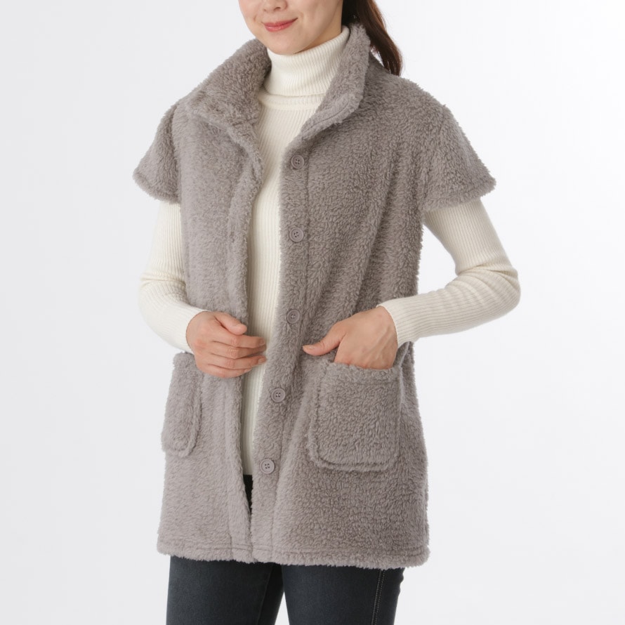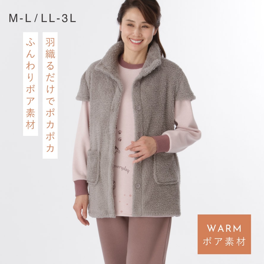 ベスト あったか ボア 冬 パジャマの上 レディース ボア ふんわり 軽い 防寒 羽織り 冬用 もこもこ シニア 女性 フレンチスリーブ ロング丈 暖かい 部屋着 外出 ゆったり 大きいサイズ パジャマ上 M-L LL-3L グレー グレージュ ボアフリースフレンチベストのレビュー
