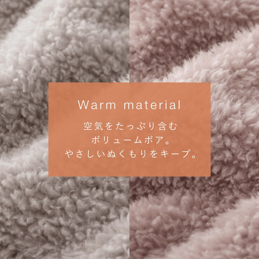 空気をたっぷり含むボリュームボアが、やさしいぬくもりをキープ。肌あたりの柔らかい素材で、素肌に触れても心地よい着心地です。