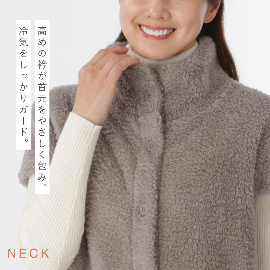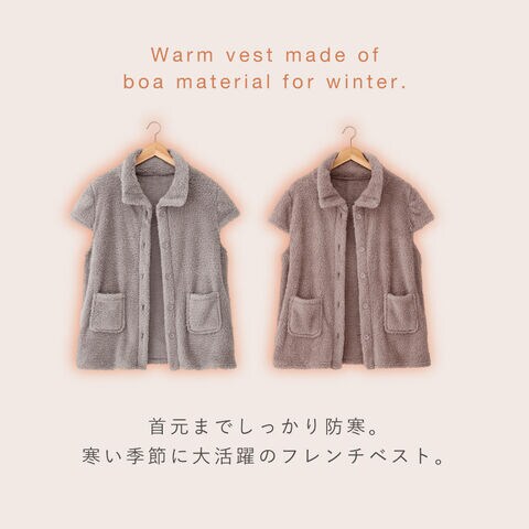 羽織るだけでぬくもりに包まれる、ふんわりボア素材のベスト。