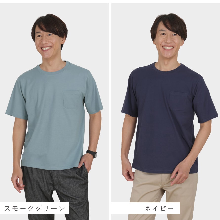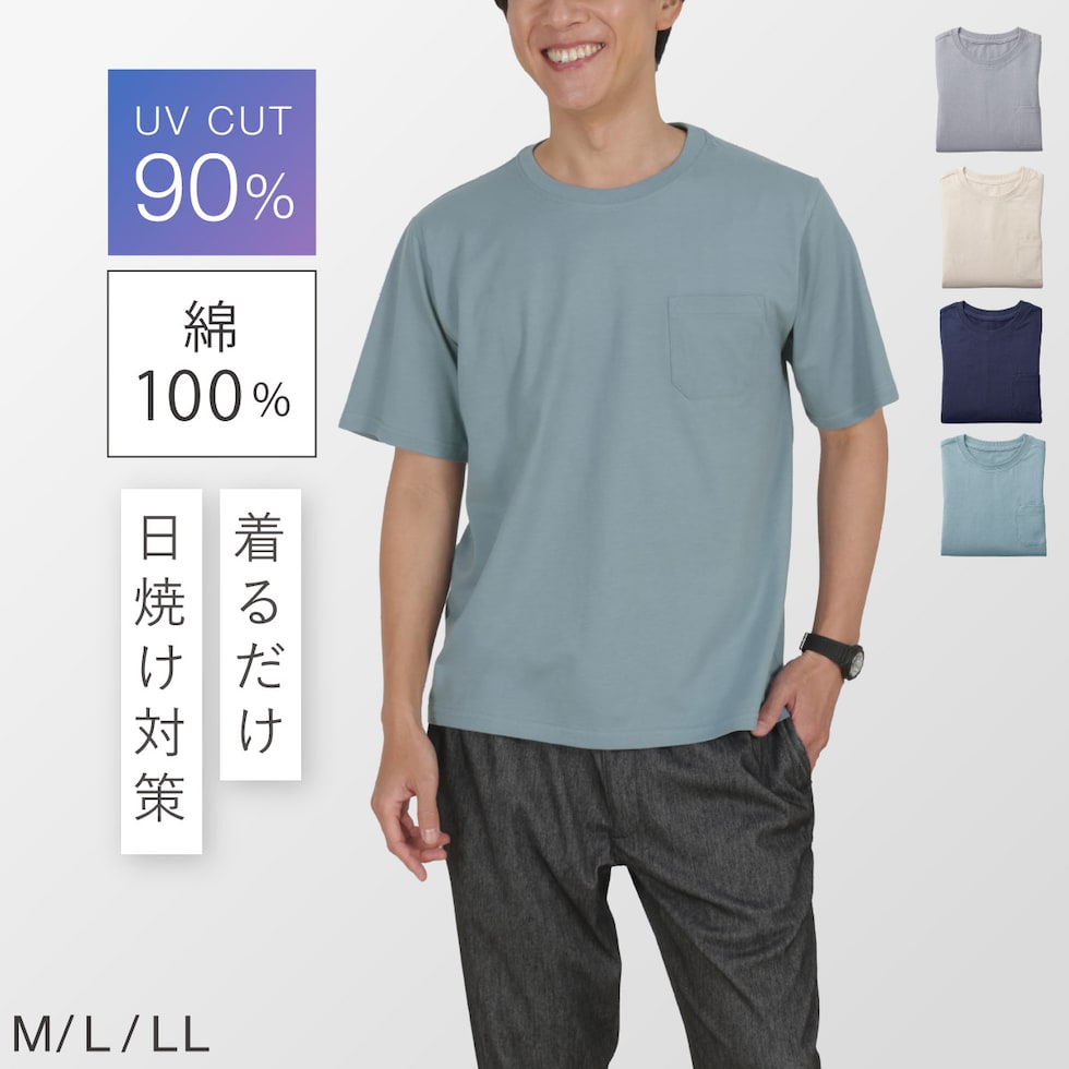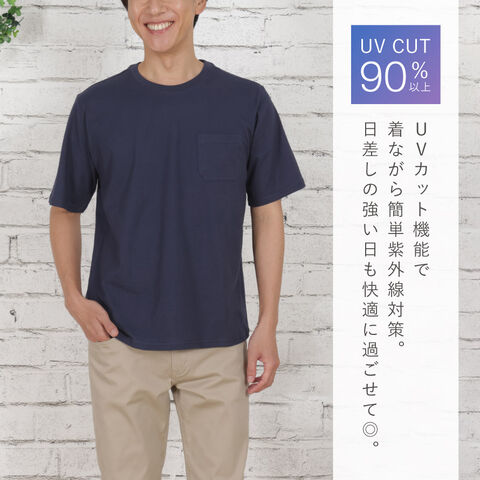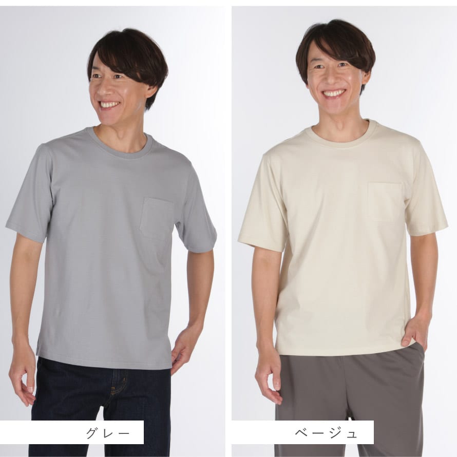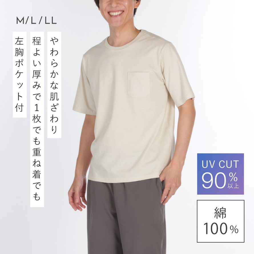 Tシャツ メンズ 綿100% 半袖 UVカット 左胸ポケット付き 型くずれしにくい SZ編み M L LL メンズ綿100%半袖Tシャツ 50代 60代 70代 男性用 紳士用 無地 ベージュ グレー ネイビー