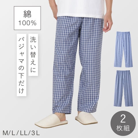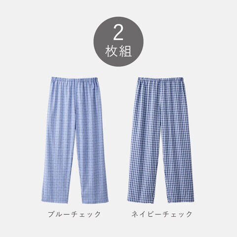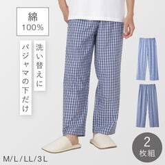 綿100%のやさしいはき心地で、毎日に使いやすいパジャマのズボン2色組です。