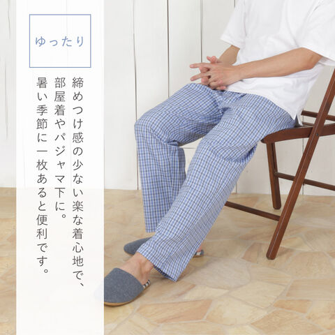 「パジャマは下だけ欲しい」「上はTシャツで十分」という方にぴったりの、パジャマの下だけを2枚セットにした便利なアイテム。特に夏は、上はお手持ちのTシャツを合わせれば十分という方も多く、パジャマ上がいらない方の洗い替え用としても重宝します。50代・60代・70代の男性にも使いやすい、落ち着いたチェック柄でご用意しました。