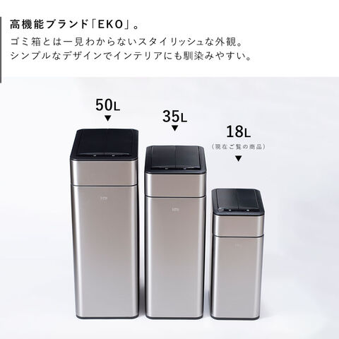 EKO ゴミ箱 ごみ箱 eko 18L 静か 蓋 両開き キッチン カウンター下 自動開閉 電動 センサー ステンレス 電池式 袋隠せる スリム EKO ファントムプロセンサービン 18L