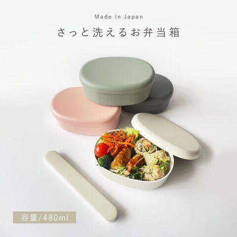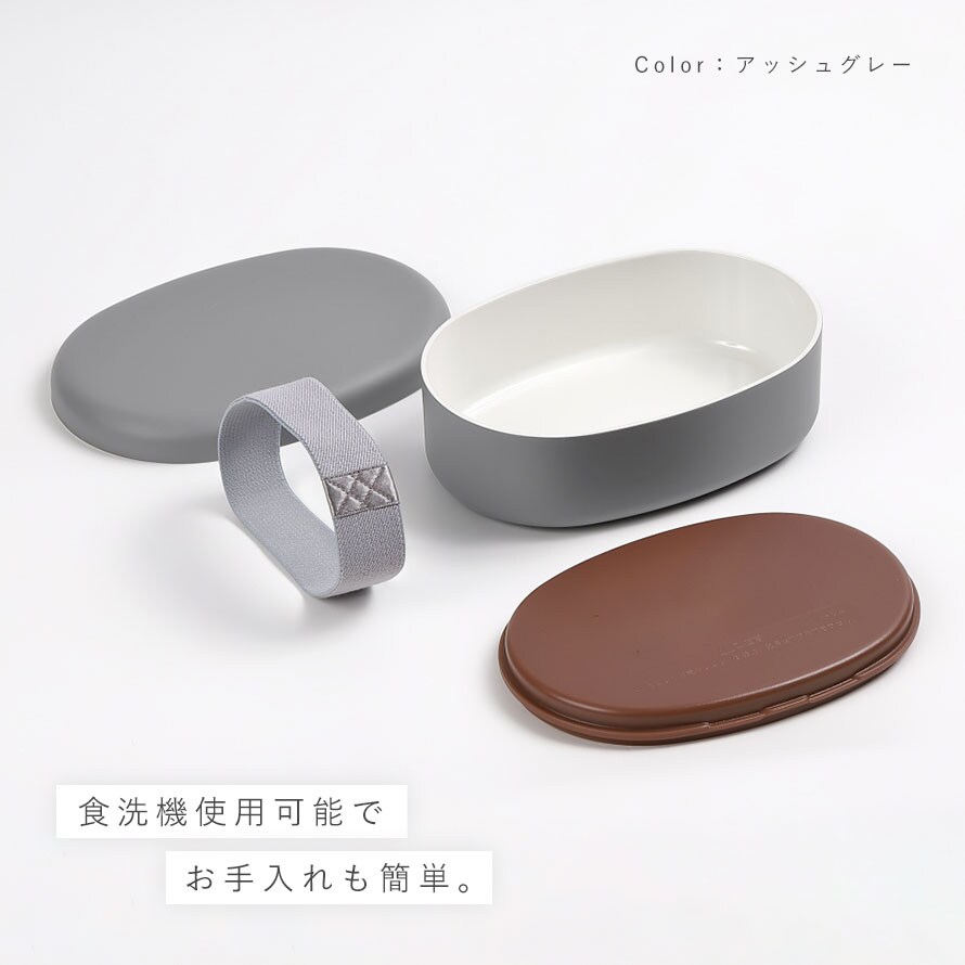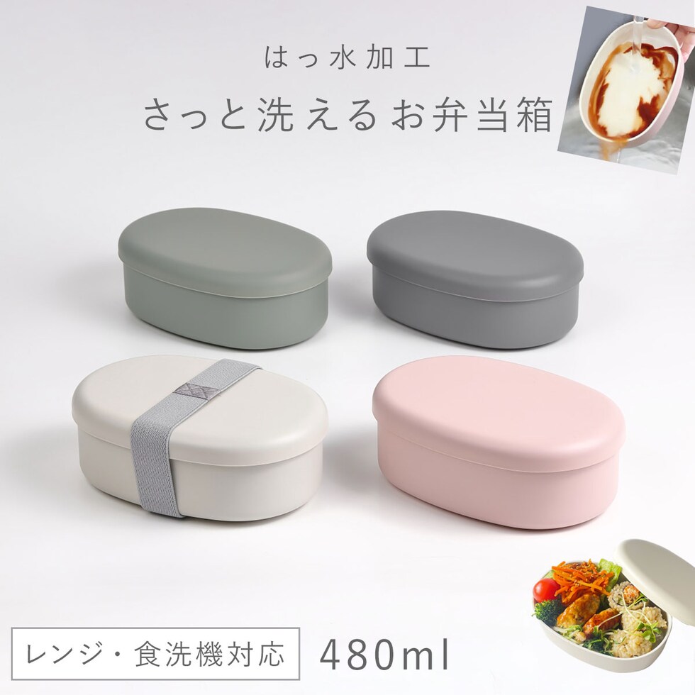弁当箱 480ml レディース 大人 一段 食洗機対応 レンジ対応 女子 男子 お弁当箱 洗いやすい 撥水 メンズ 日本製 シンプル おしゃれ さっと洗えるお弁当箱 480 ベルト付き オーバル 小判型 くすみカラー 可愛い BPAフリー