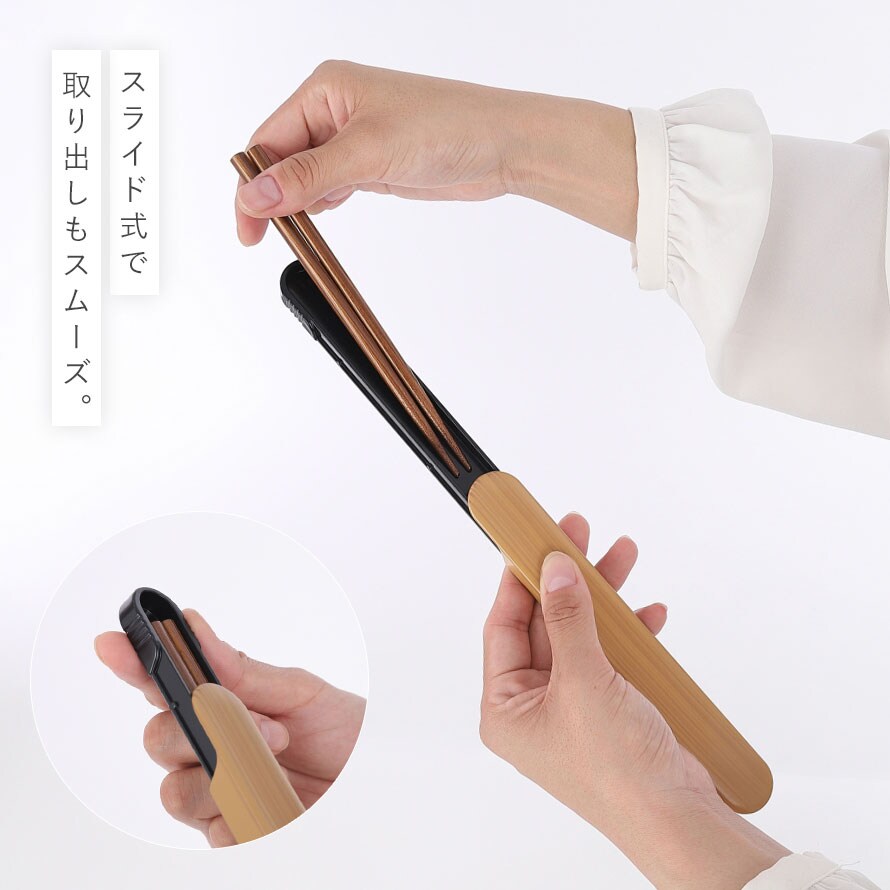 開閉がスムーズなスライド式の箸箱だから、扱いやすく便利です。