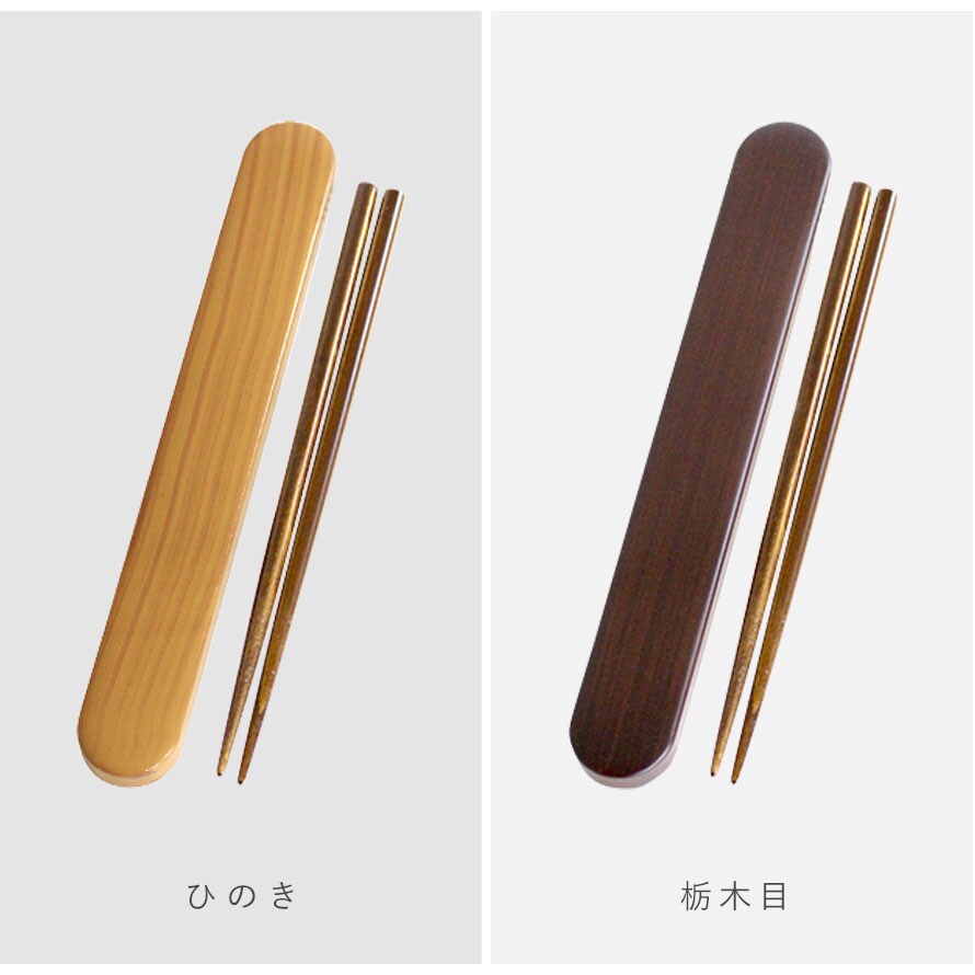 自然の温もりを感じさせる木目調の箸箱と、天然木の箸のセット。