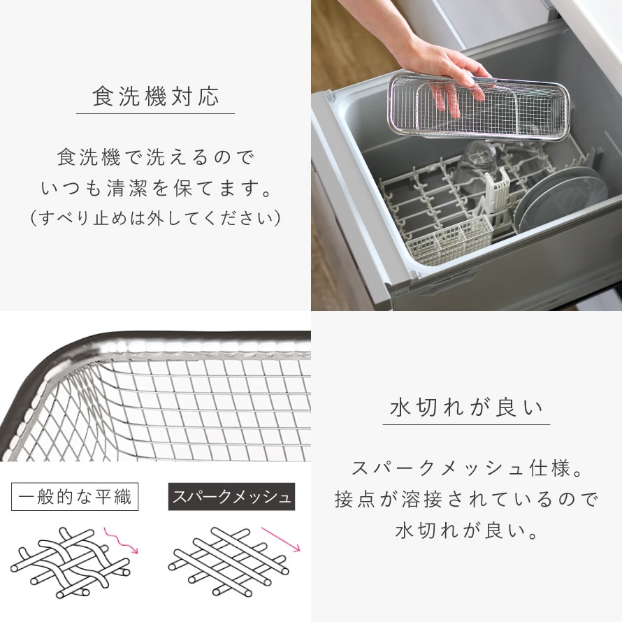 水切れの良いスパークメッシュ。網なので細かな物も落ちる心配がありません。