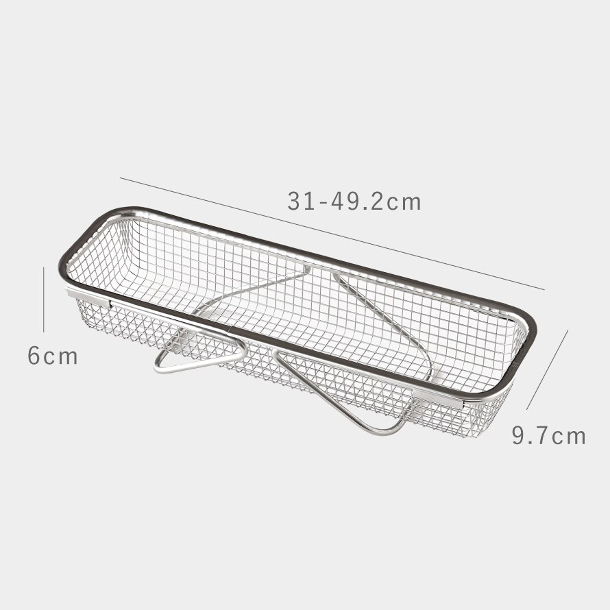 伸縮バーでシンクの奥行きに合わせて31~49.2cmまで調整可能。ご家庭のシンクに合わせて便利に使用できます。対応シンク奥行サイズは32~45cmです。