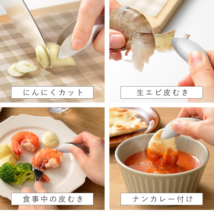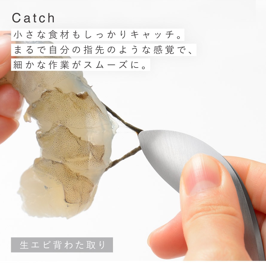 指ではつまみにくい小さな食材もしっかりキャッチ。にんにくやキムチなど、においが手や爪に残りやすい食材にも直接触れずに扱えるので、調理中も快適です。