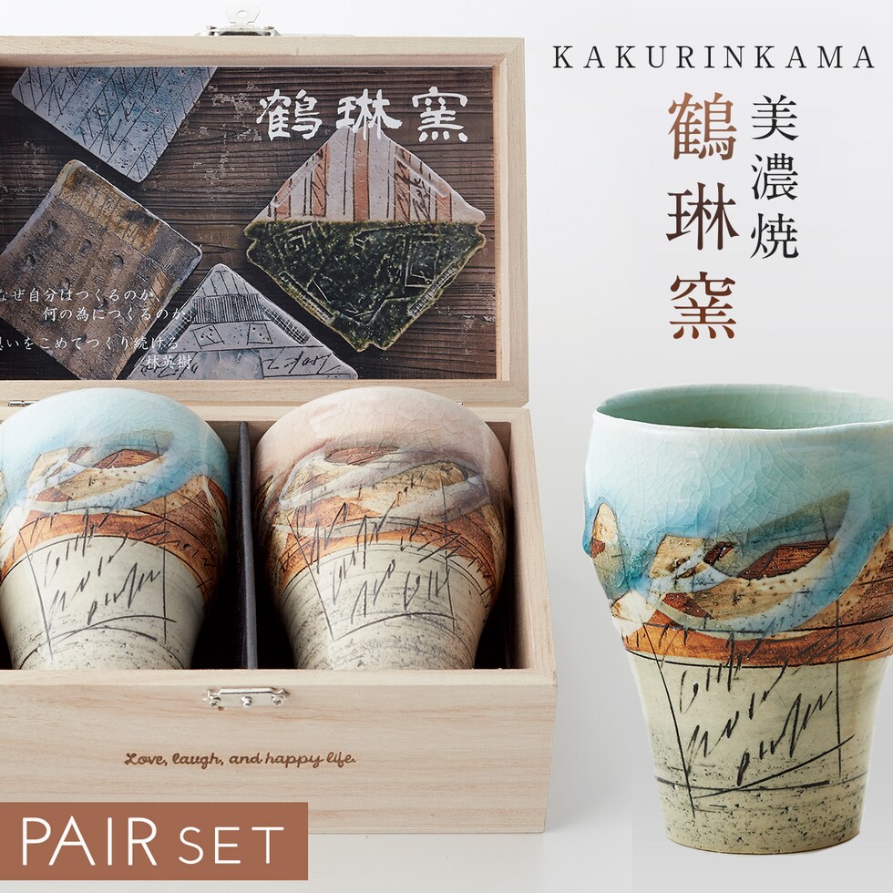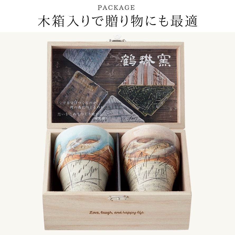 ペアタンブラー 焼酎カップ 結婚祝い 敬老の日 プレゼント フリーカップ ペア 食器セット ギフト 美濃焼 美濃焼き 和食器 和モダン 木箱入 お祝い 贈り物 おしゃれ ペアカップ お酒好き グッズ タンブラー セット 鶴琳窯 木箱入ペアカップ揃