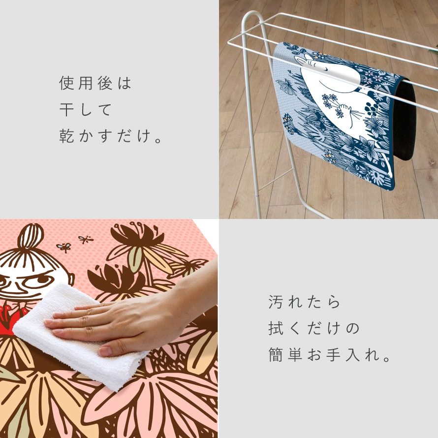 汚れた場合は、濡れた布で優しく拭き取るだけの簡単お手入れ。