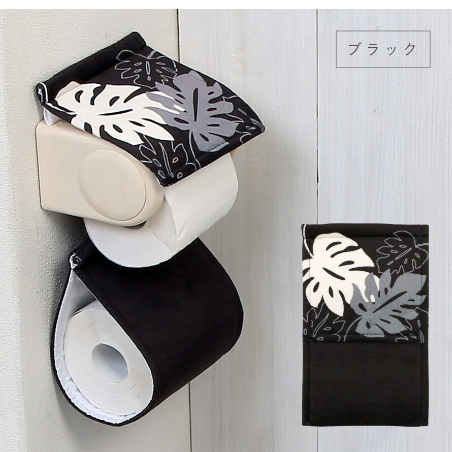 モノクロ&植物柄が落ち着いた印象のペーパーホルダーカバー。