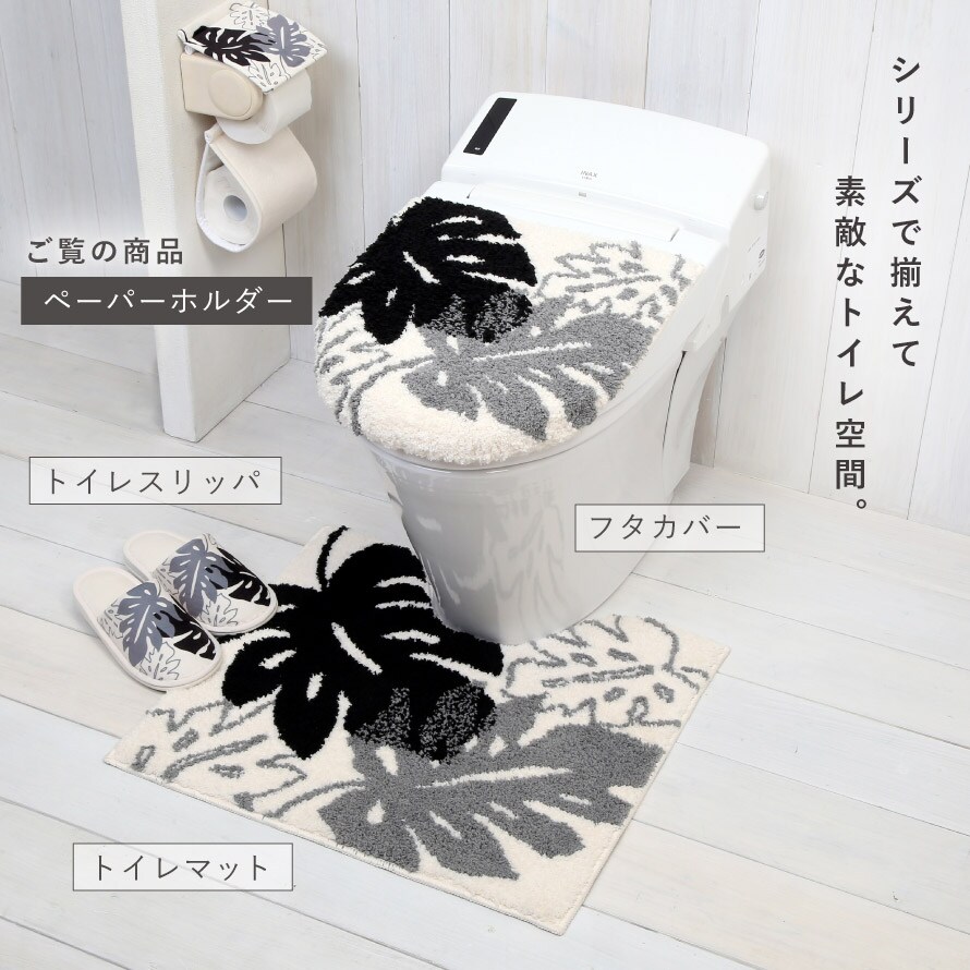 トイレットペーパーホルダーカバー モノトーン ふかふか トイレ 洗える モンステラ 柄 ブラック 黒 アイボリー 北欧 おしゃれ モノ・ステラ ペーパーホルダーカバー