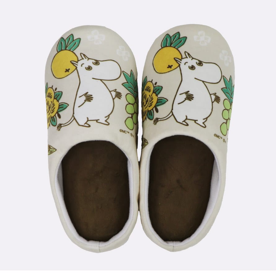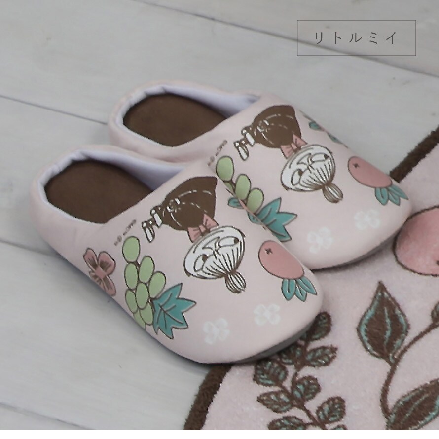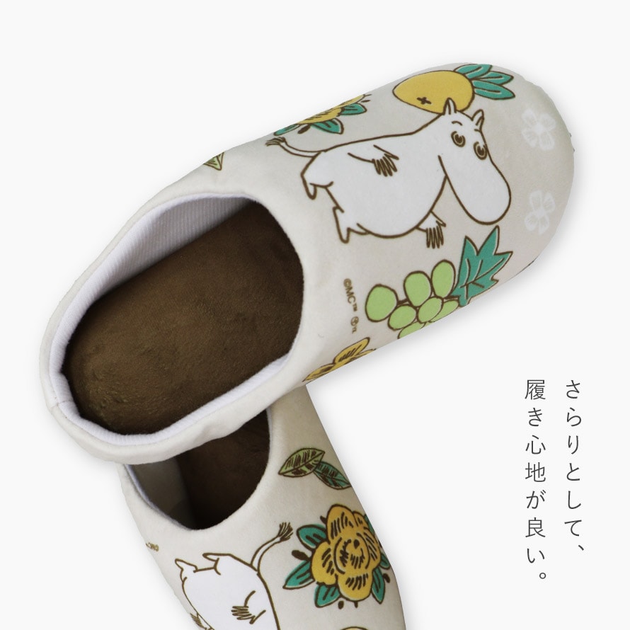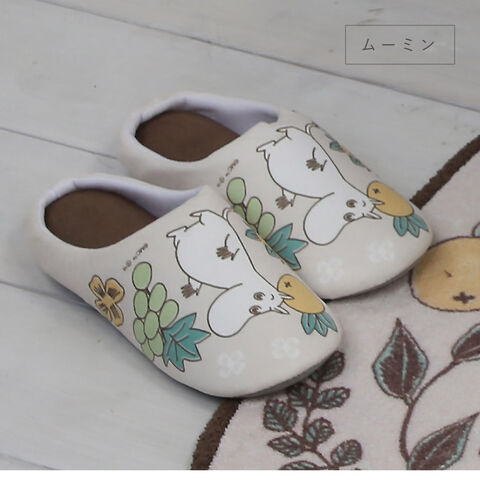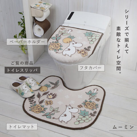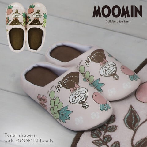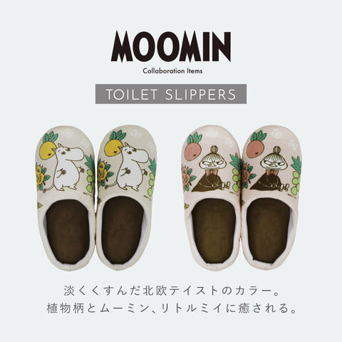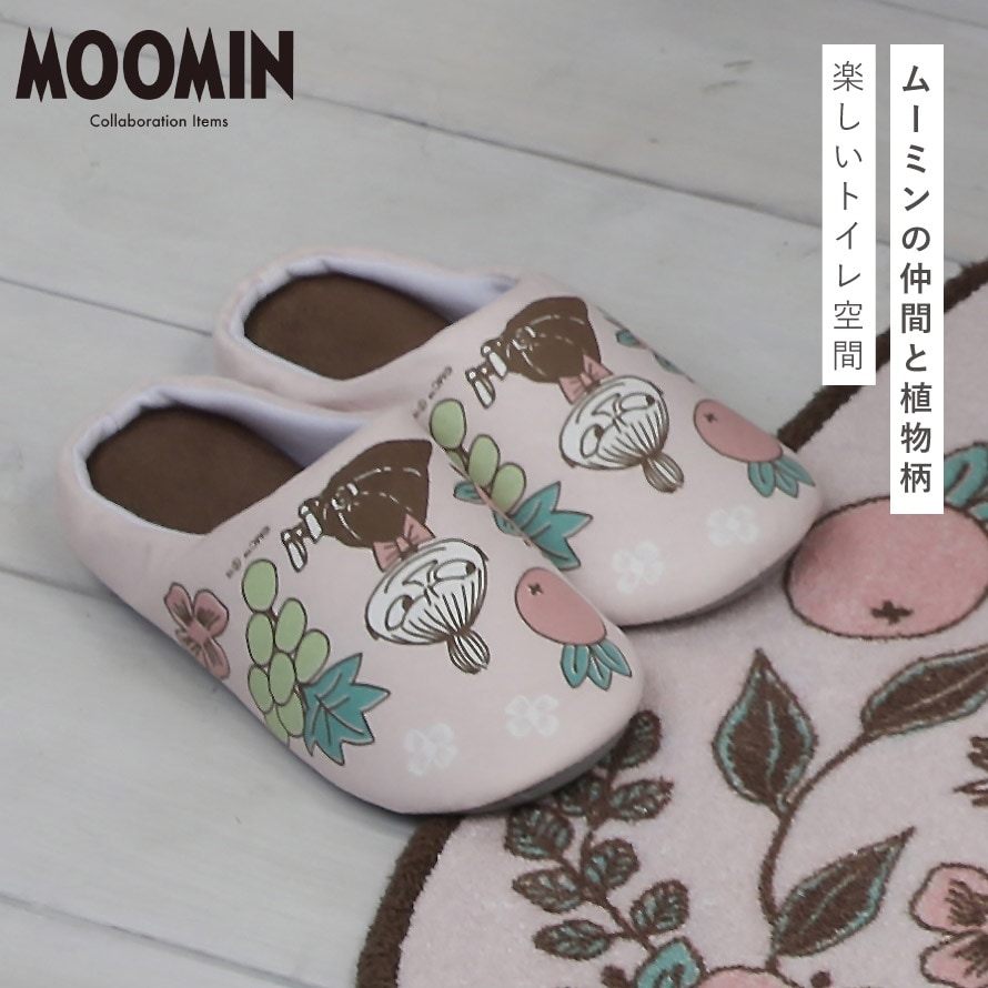 ムーミンのキャラクター達&植物の絵柄が優しいカラーのトイレスリッパ。