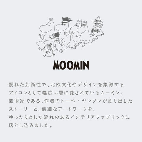フィンランドの国民的作家トーベ・ヤンクンによって1945年に最初の本が出版されました。ユーモアや哲学的なスパイスも効いた童話・コミックは今も日本を含め世界中で愛されています。