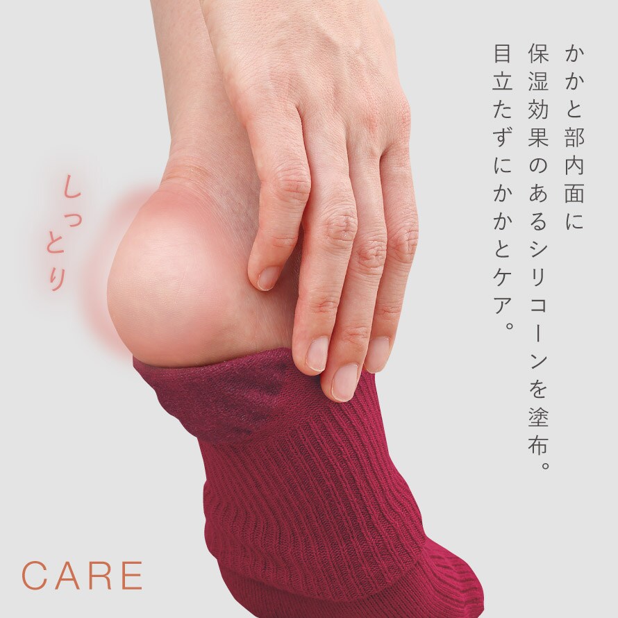 かかと部内面に保湿効果のあるシリコーン樹脂を塗布。内側なので目立たずにかかとケアができます。