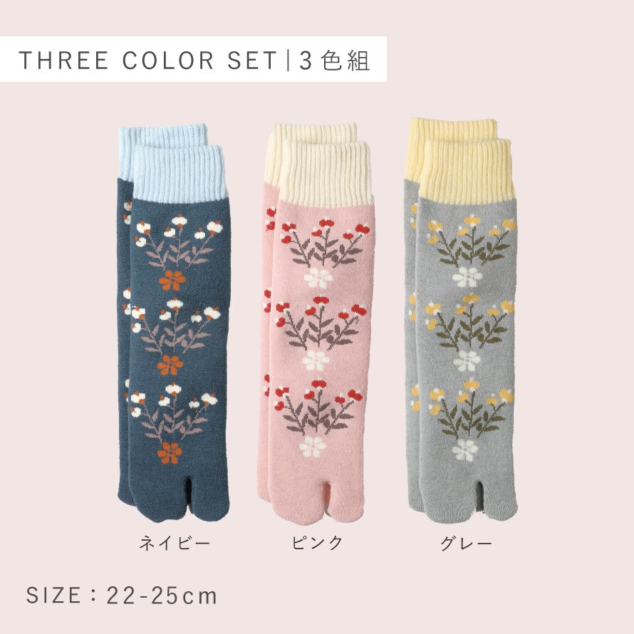 履き口 ゆったり 足袋ソックス レディース 冬 靴下 暖かい 【3色組】 22-25cm 秋冬 裏起毛 花柄 足袋 おしゃれ 【 あたたかい裏起毛タビソックス 】 口ゴムゆったり 締め付けない ゆるめ むくみ 介護 高齢者 シニア まとめ買い 3足 裏起毛パイルびよ~ん花柄タビソックス