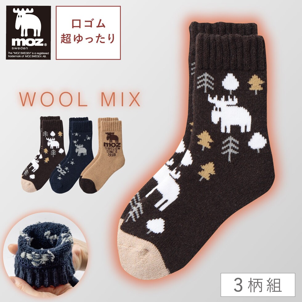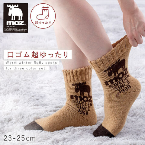 moz 靴下 履き口 ゆったり レディース 3色組 23-25cm 北欧 モズ 冬 暖かい パイル ふわふわ 口ゴムゆったり おしゃれ かわいい 締め付けない mozゆったりセーター風バラエティソックス