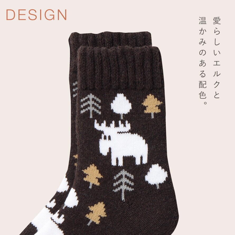 おしゃれな北欧雑貨ブランドで日本でも大人気の「エルク」がプリントされた靴下です。