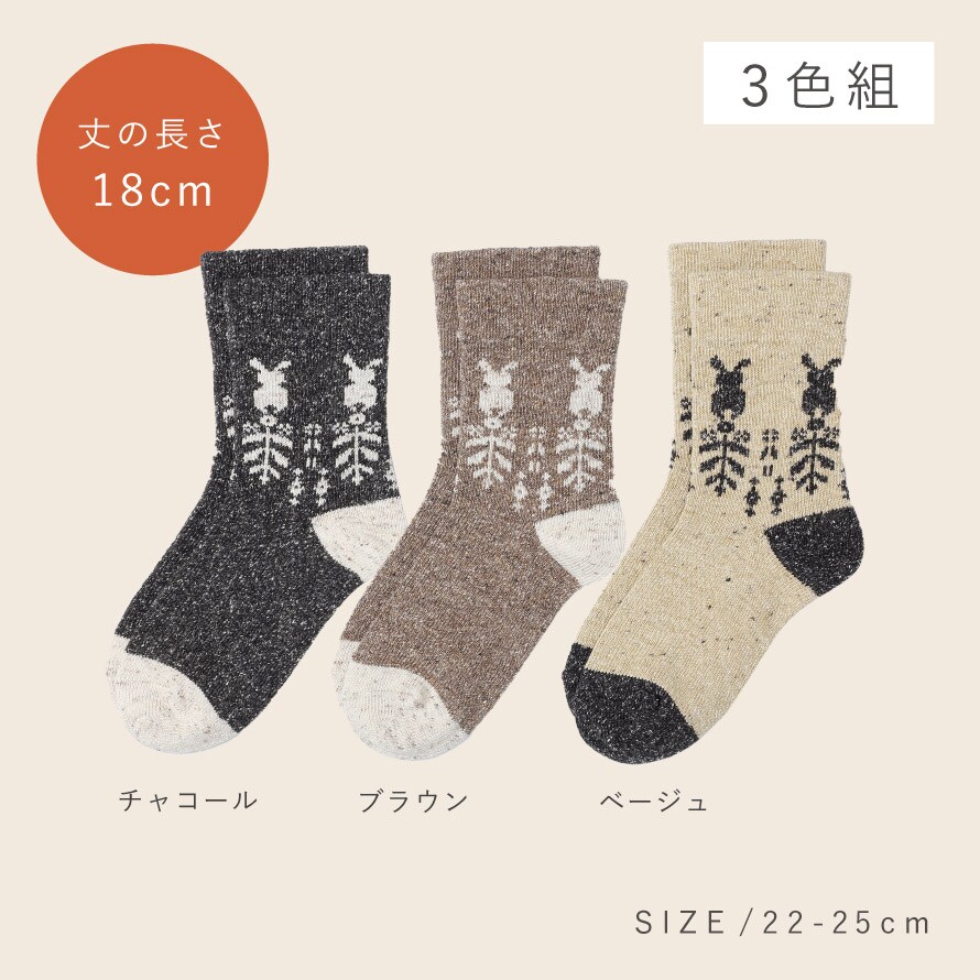 履き口 ゆったり 靴下 レディース 冬 暖かい 【3色組】 22-25cm 吸湿発熱 秋冬 吸湿発熱 エクス 足首 ゆるめ 口ゴムゆったり 締め付けない まとめ買い 3足セット うさぎ柄 奈良産 日本製 冷え対策 つま先かかと補強 つま先・かかとあったかネップウサギとお花ソックス