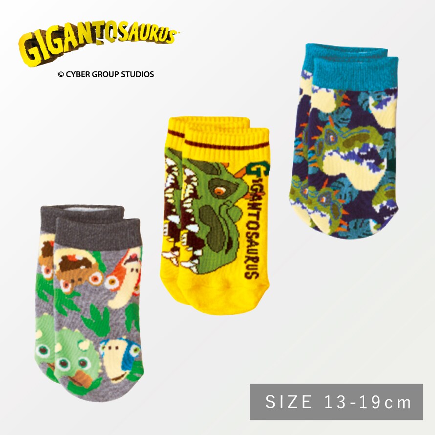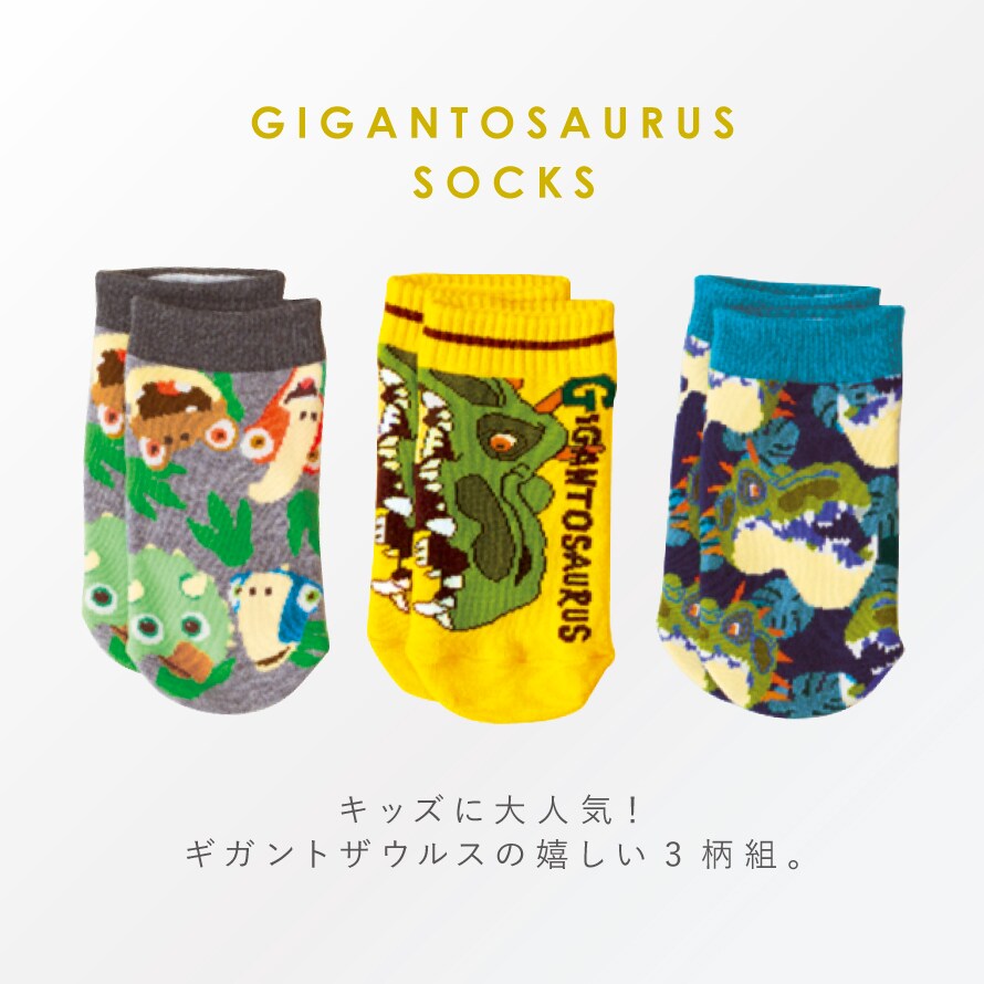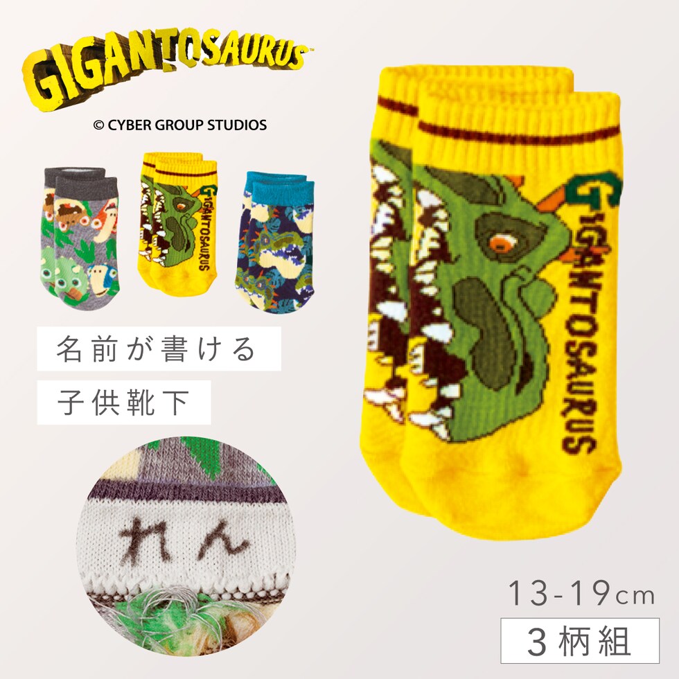 恐竜 靴下 子ども キッズ 男の子 3柄組 13-19cm ギガントサウルス スニーカー ソックス くるぶし 靴下 くるぶしソックス スニーカー丈 ローソックス 名前が書ける ギガントサウルスフロントスニーカー丈ソックス