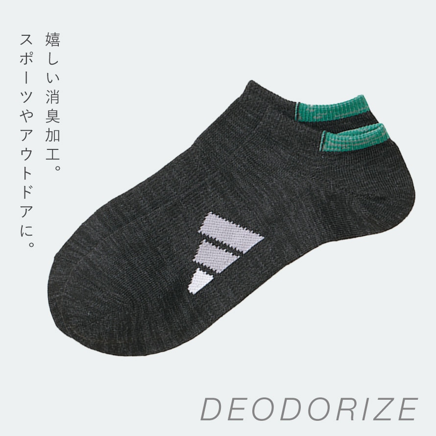 嬉しい消臭機能付き。汗をかいたりムレやすいスポーツや学校にもおすすめ。