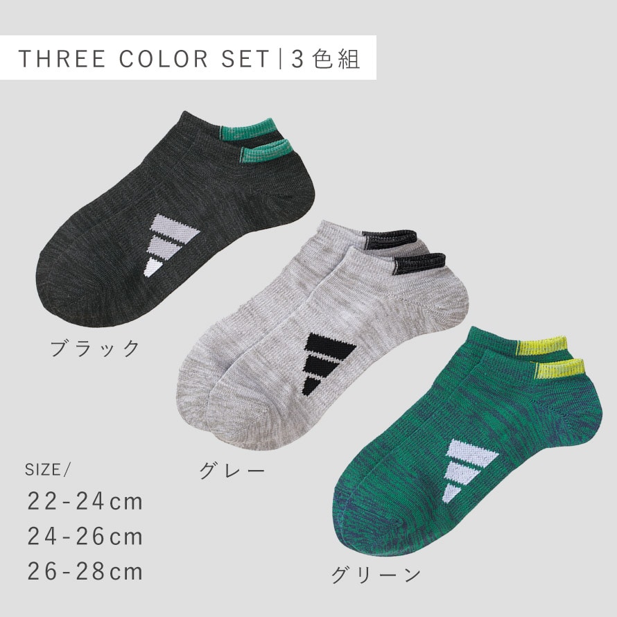 アディダス adidas 靴下 キッズ メンズ ジュニア 3色組 22-24cm 24-26cm 26-28cm スニーカー くるぶし 靴下 くるぶしソックス 消臭 子供 小学生 中学生 3足 セット スポーツ ブランド アディダス 消臭スニーカー丈ソックス