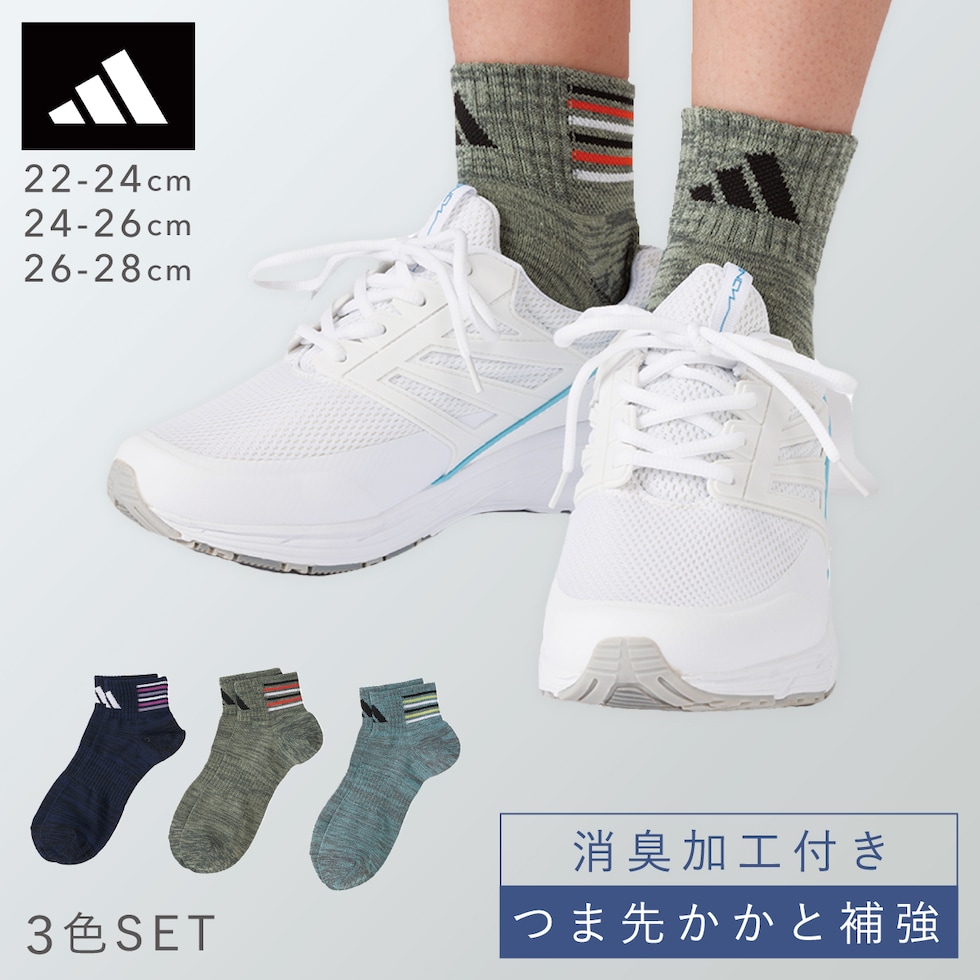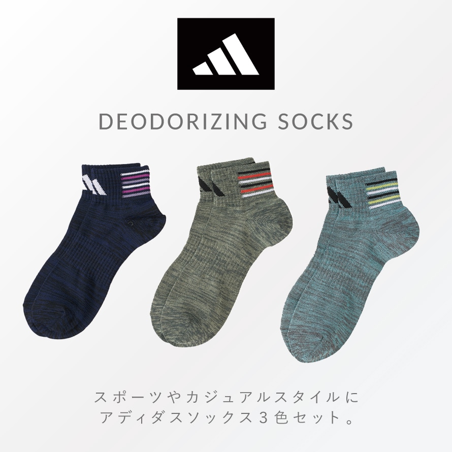 アディダス adidas 靴下 メンズ ジュニア 3色組 22-24cm 24-26cm 26-28cm 3足セット 消臭 ショート スポーツ ブランド キッズ 男の子 子供 小学生 中学生 バッグレインボーラインソックス