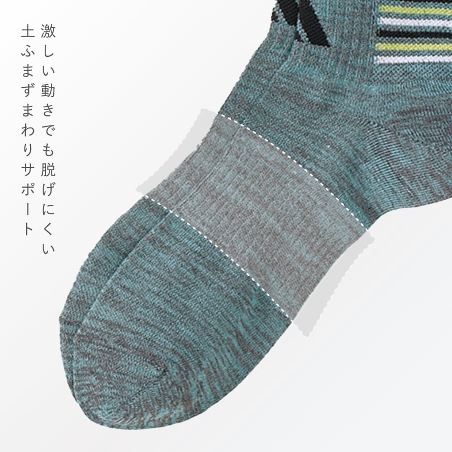土踏まず周りはサポート入りで、活発な動きでもずれにくい仕様。