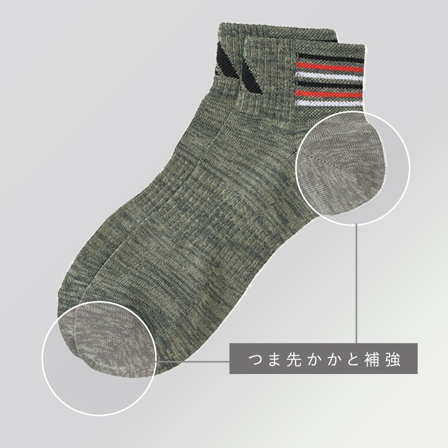 つま先・かかと補強で丈夫なので、長くお使いいただけます。