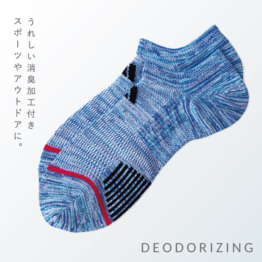 嬉しい消臭機能付き。汗をかいたりムレやすいスポーツや学校にもおすすめ。