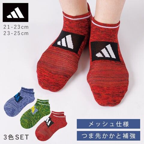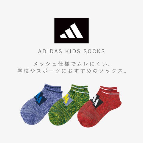 アディダス 靴下 キッズ メンズ 21-23cm 23-25cm 3色組 春夏 夏 メッシュ 涼しい 夏用 子供 小学生 中学生 3足 セット スポーツ ブランド アディダス キッズフロントロゴソックス