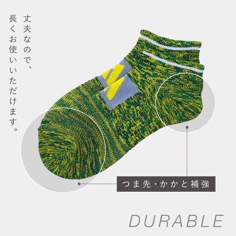 つま先・かかと補強で丈夫なので、長くお使いいただけます。