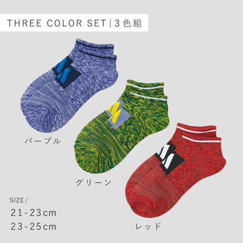 洗い替えにも便利なパープル、レッド、グリーンの3色セットです。
