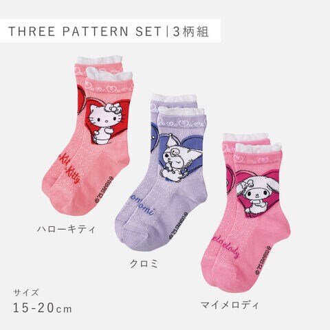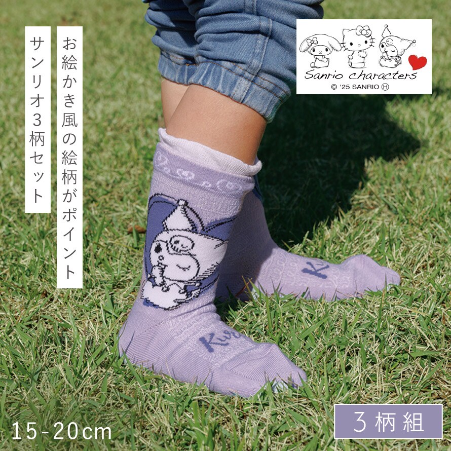 キティちゃん 靴下 子ども キッズ 子供 女の子 15cm 3柄組 15-20cm サンリオ キティ マイメロディー クロミ 可愛い 名前が書ける 日本製 サンリオキャラクターズお絵かき風ソックス