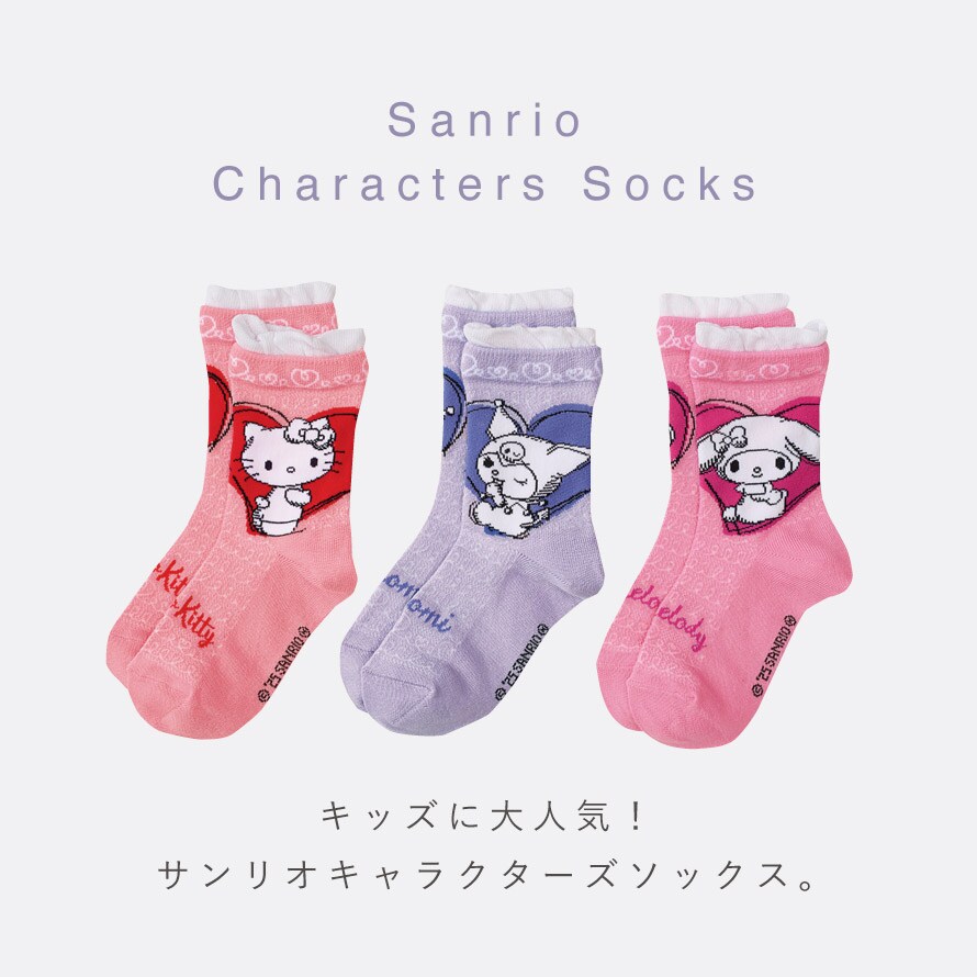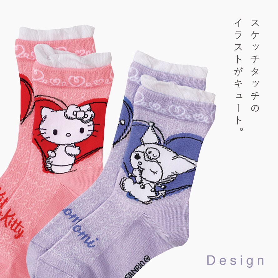 大人気のサンリオキャラクターズ。キティ、クロミ、マイメロのスケッチ風靴下。