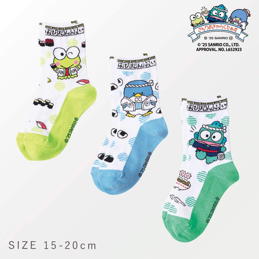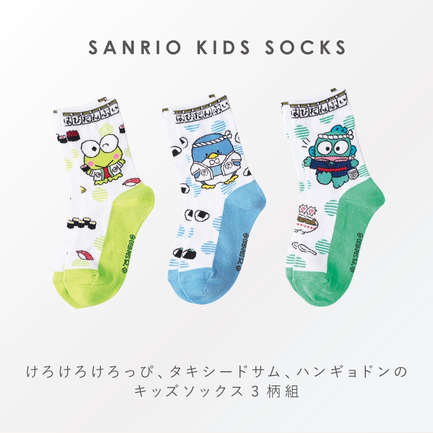サンリオ 靴下 3柄組 15-20cm 女の子 15cm キッズ 女の子 けろけろけろっぴ ハンギョドン タキシードサム キャラクターソックス 可愛い 名前が書ける サンリオキャラクターズ グルメソックス