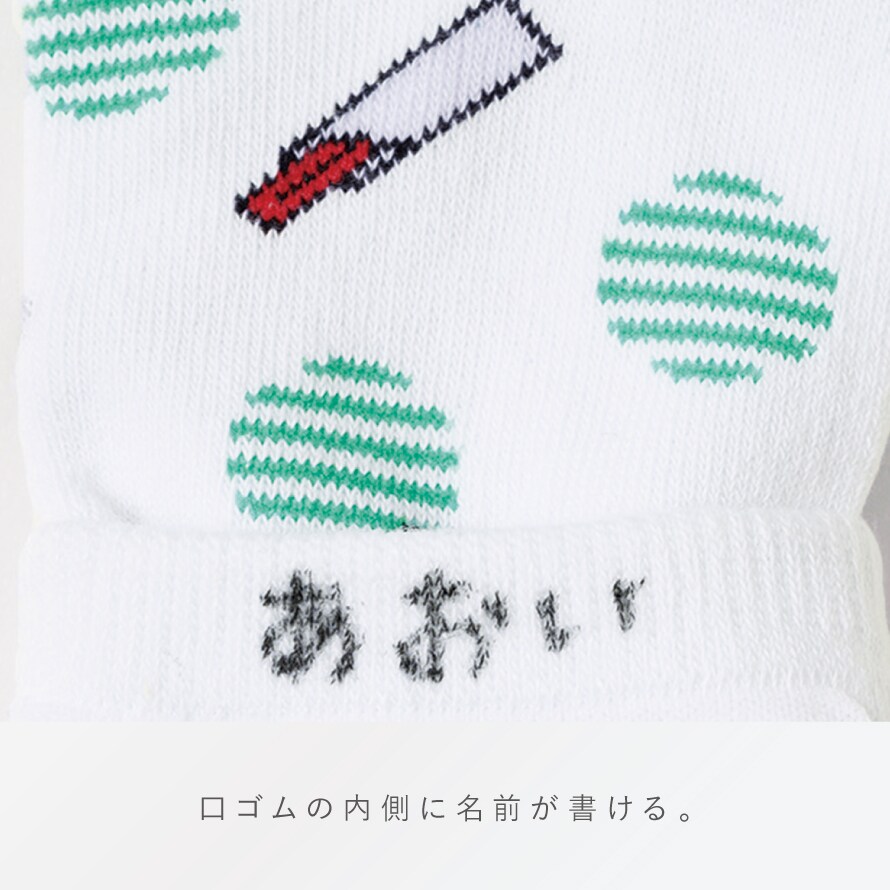 口ゴム内側に名前が書けるスペースなので、通学・通園にもおすすめ。