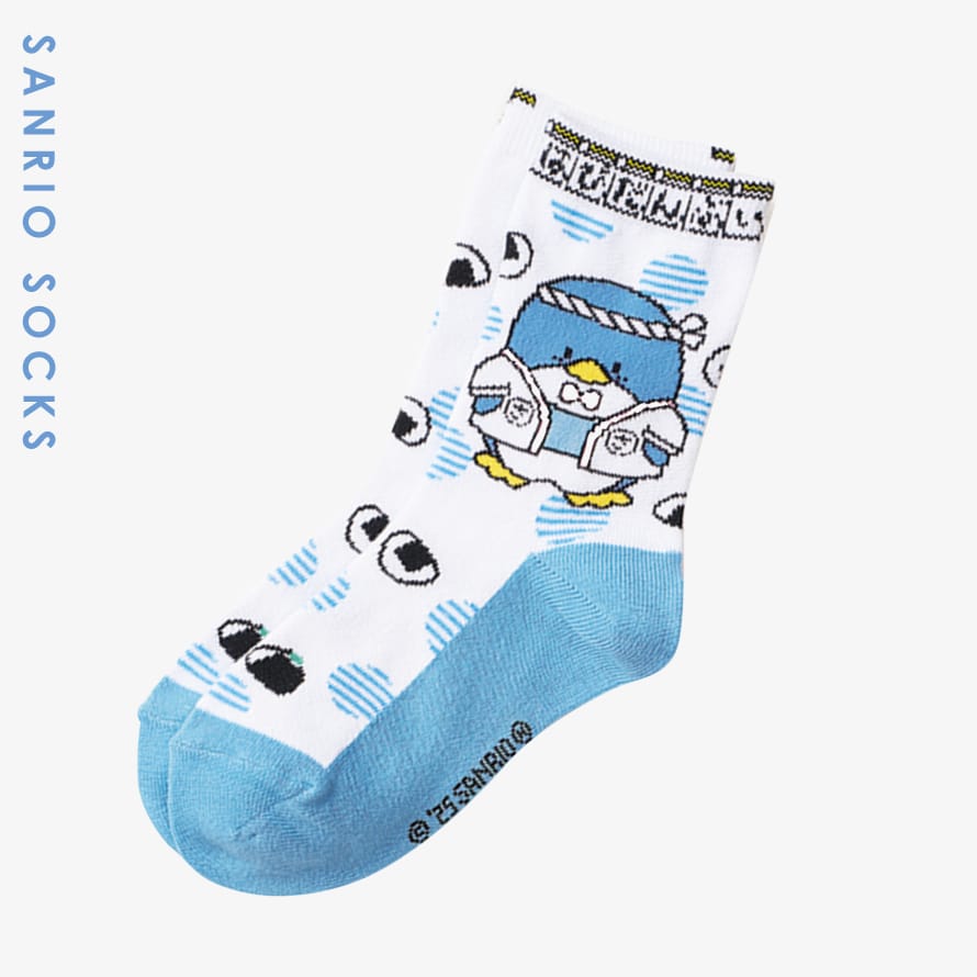 サンリオキャラクターのけろけろけろっぴ、ハンギョドン、タキシードサムのソックス。