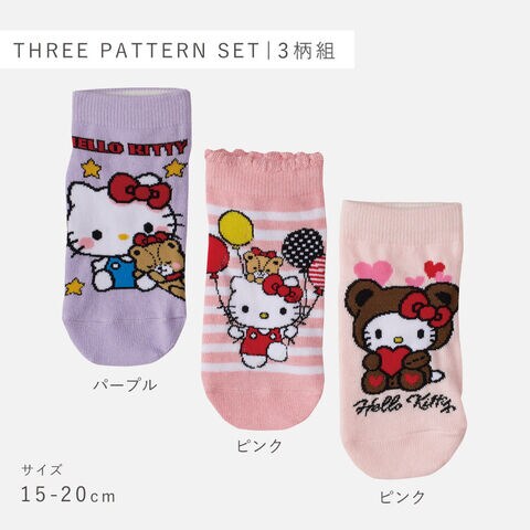 キティちゃん 靴下 子ども キッズ 子供 女の子 15cm 3柄組 15-20cm ハローキティ サンリオ キティ 可愛い 名前が書ける ハローキティ ラブリーベアーソックス