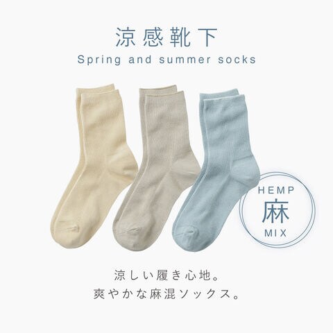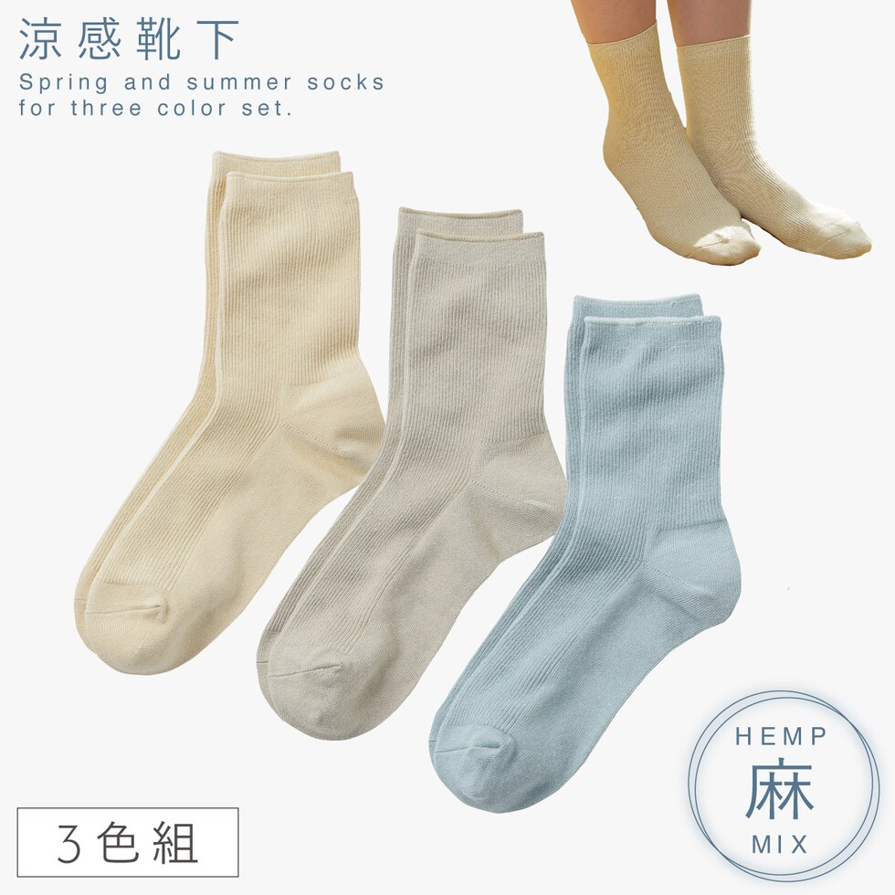 靴下 レディース 夏用 麻 3色組 22-25cm 春夏 薄手 涼しい リブ 蒸れない 麻混リブ編みフィットソックス アース