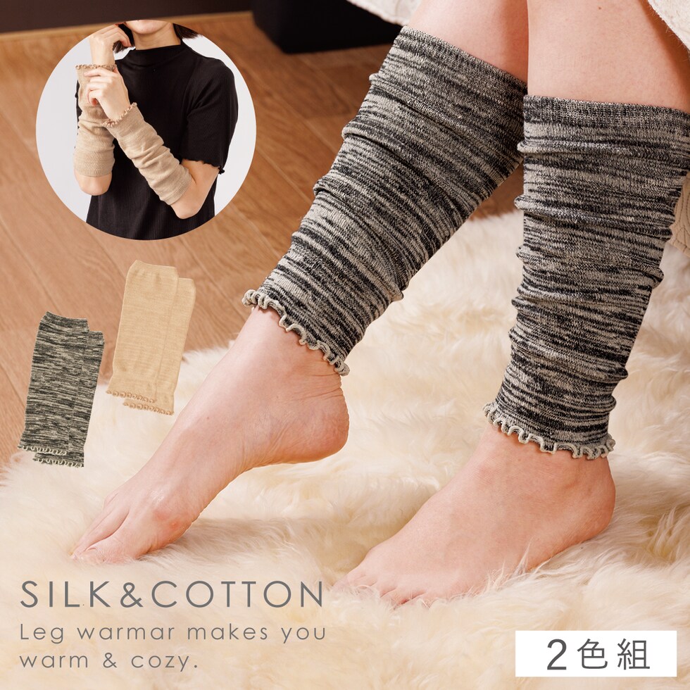 レッグウォーマー 2色組 レディース ゆったり アームウォーマー シルク コットン 足首 手首 ウォーマー シルク&コットン ゆったりアーム&レッグウォーマー
