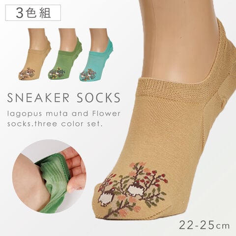 スニーカー ソックス レディース 3色組 22-25cm くるぶし ショート 靴下 くるぶしソックス 滑り止め 脱げにくい スニーカー丈 ローソックス 春夏 夏用 おしゃれ すっきり浅ばき雷鳥スニーカー丈ソックス(すべり止め付)